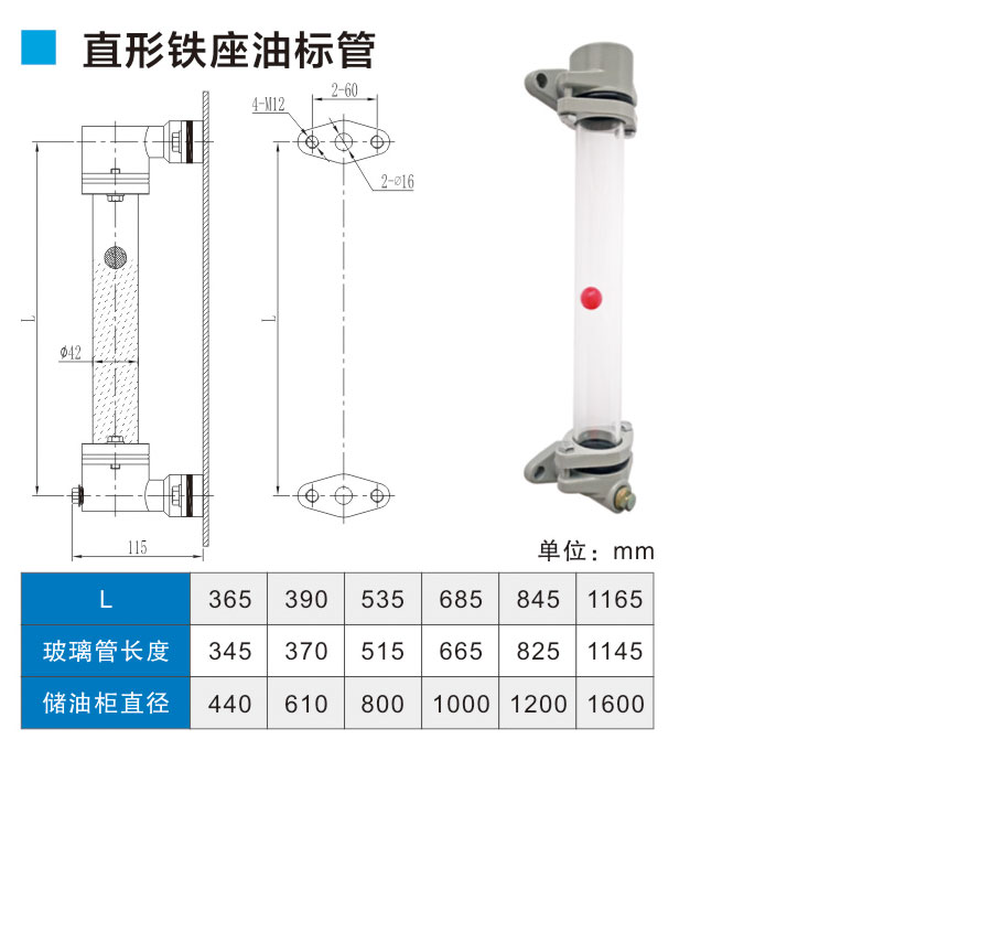 Oil gauge pipe with straight iron base