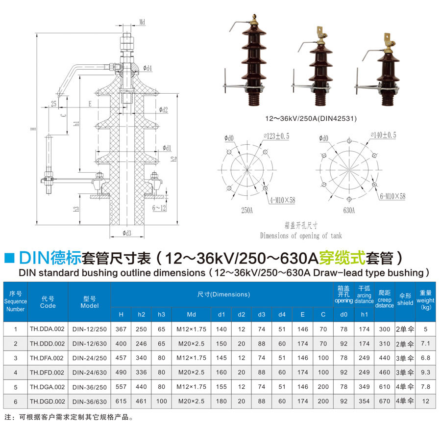DIN standard bushing 1-52kV