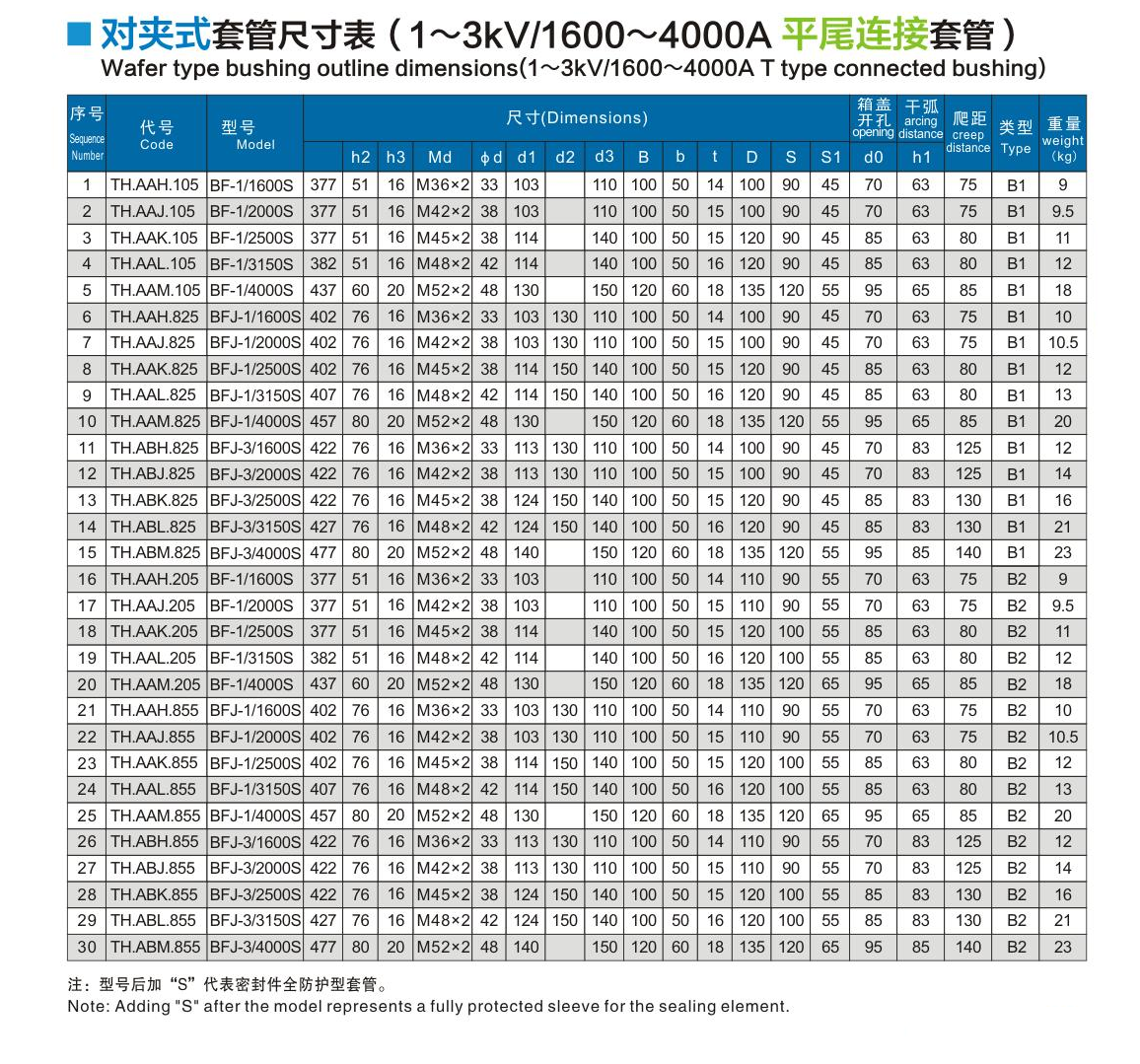 1~3kV/1600~4000A平尾連接套管