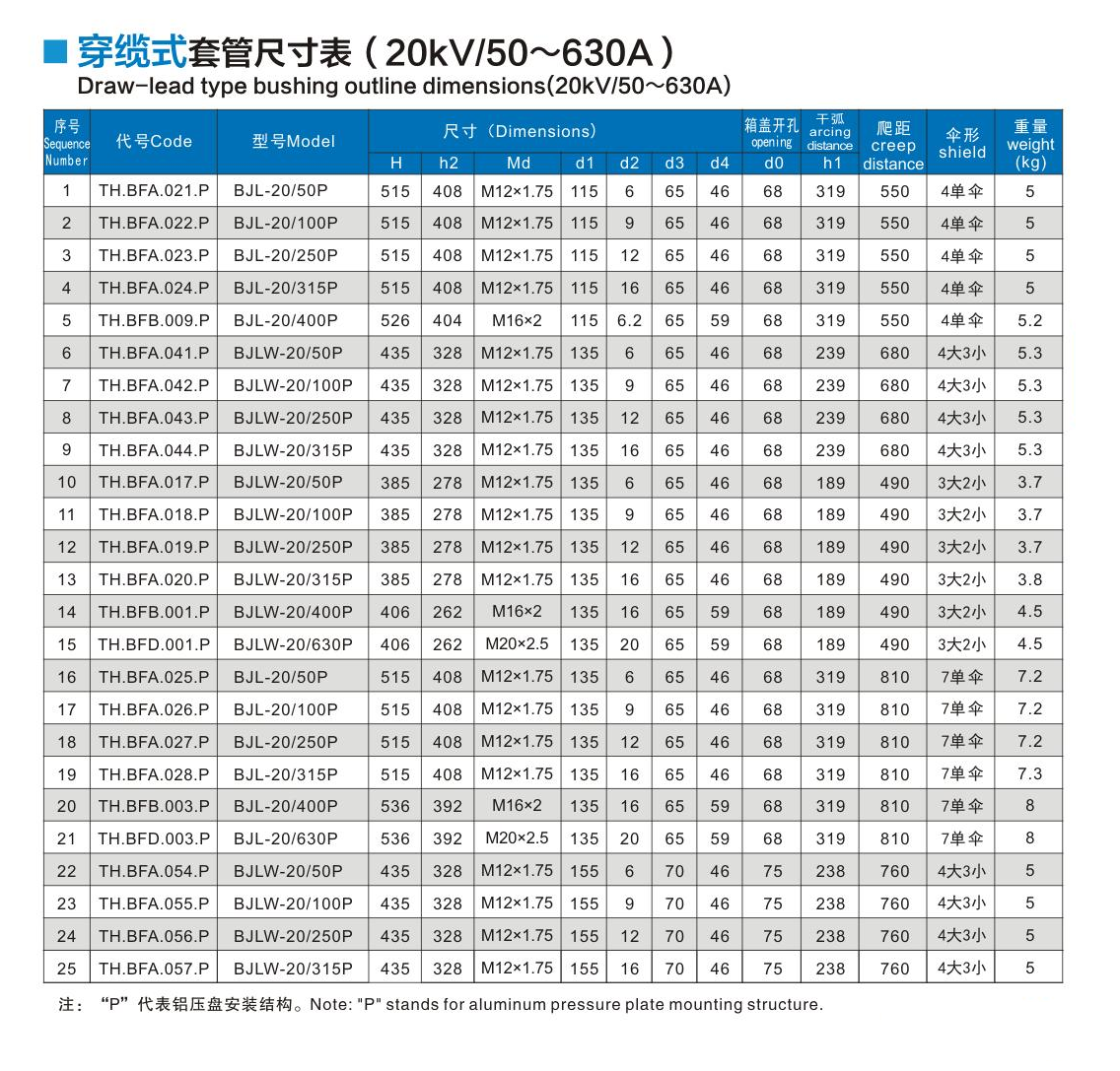 穿纜式套管20kV/50~630A