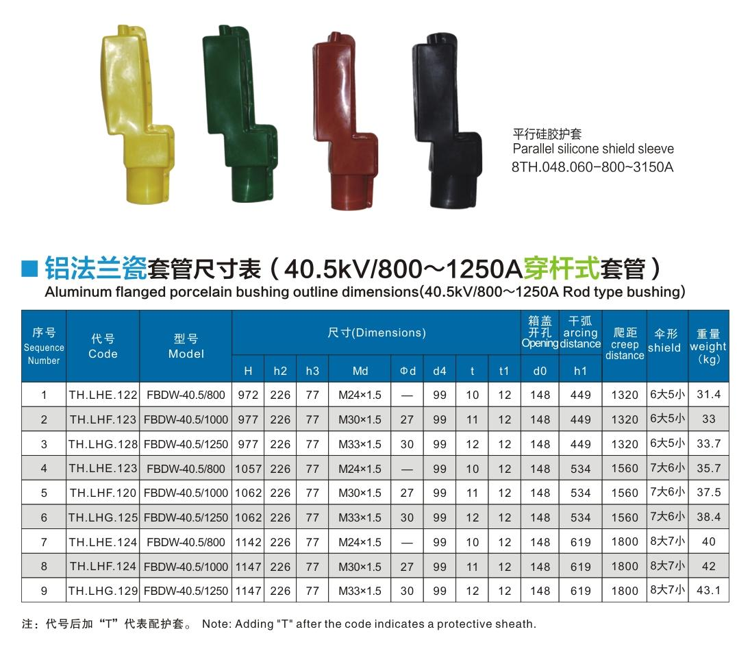 鋁法蘭瓷套管40.5kV/800~1250A穿桿式套管