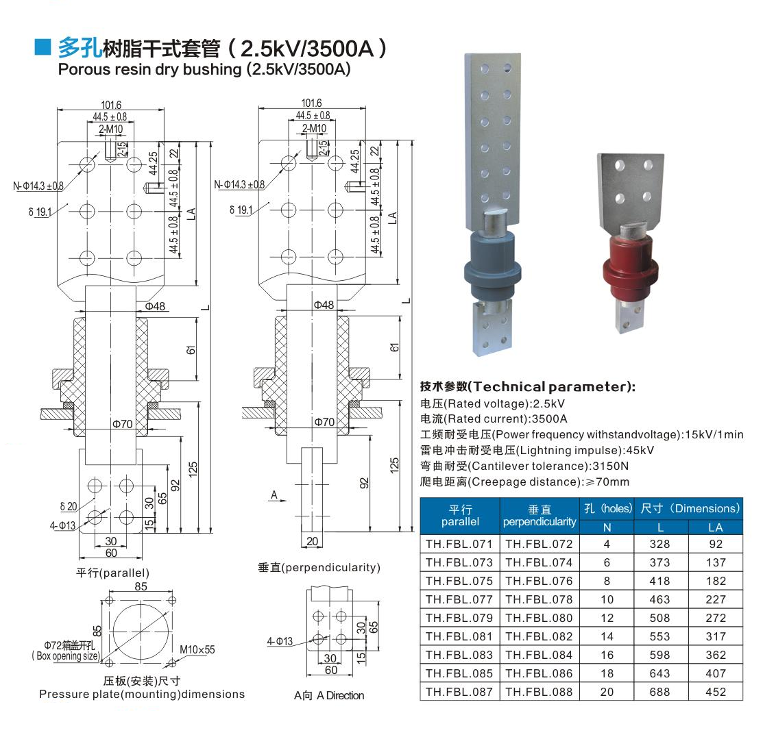 多孔樹脂干式套管2.5kV/3500A