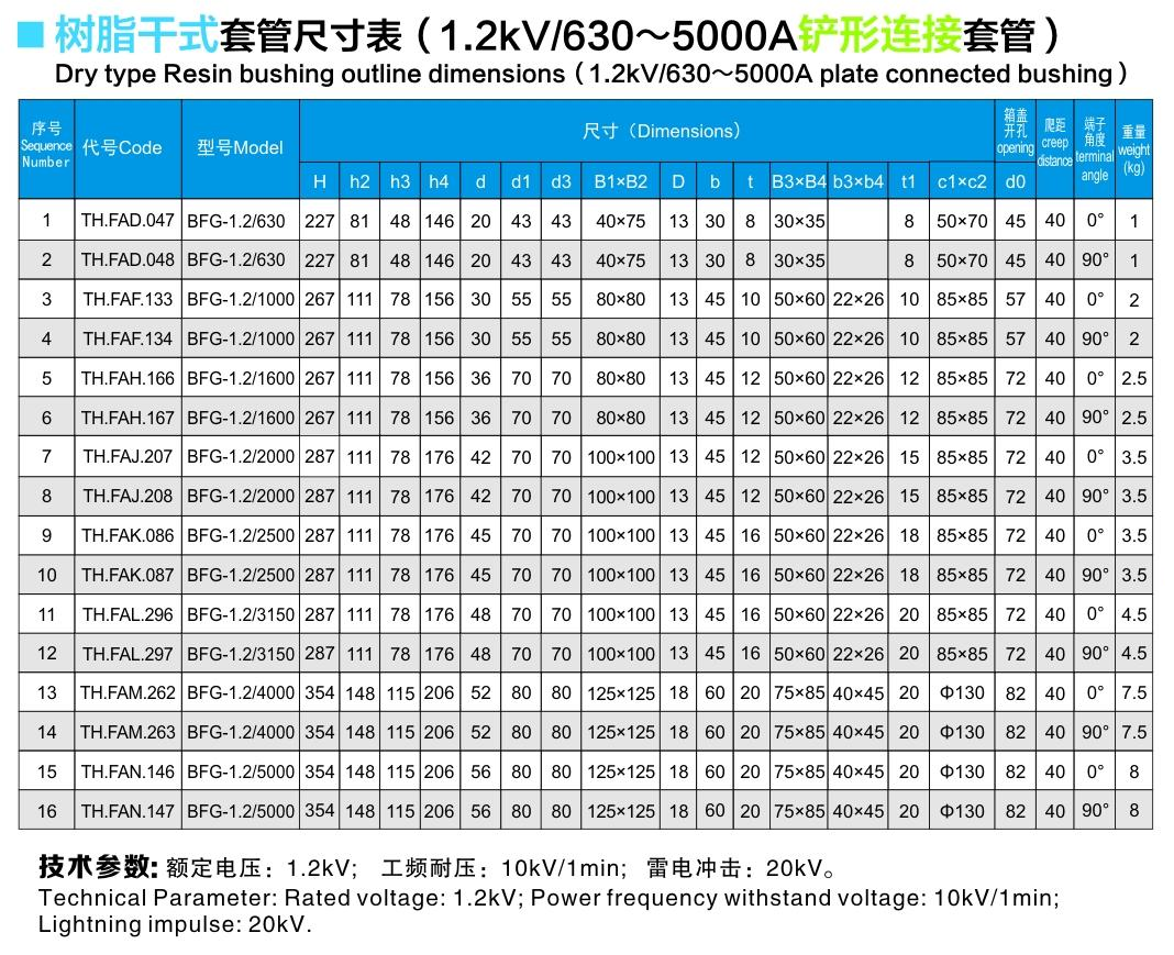 樹脂干式套管1.2kV/630~5000A鏟形連接套管