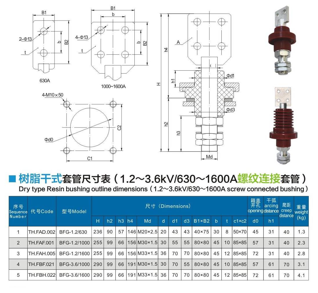 樹脂干式套管1.2~3.6kV/630~1600A螺紋連接套管