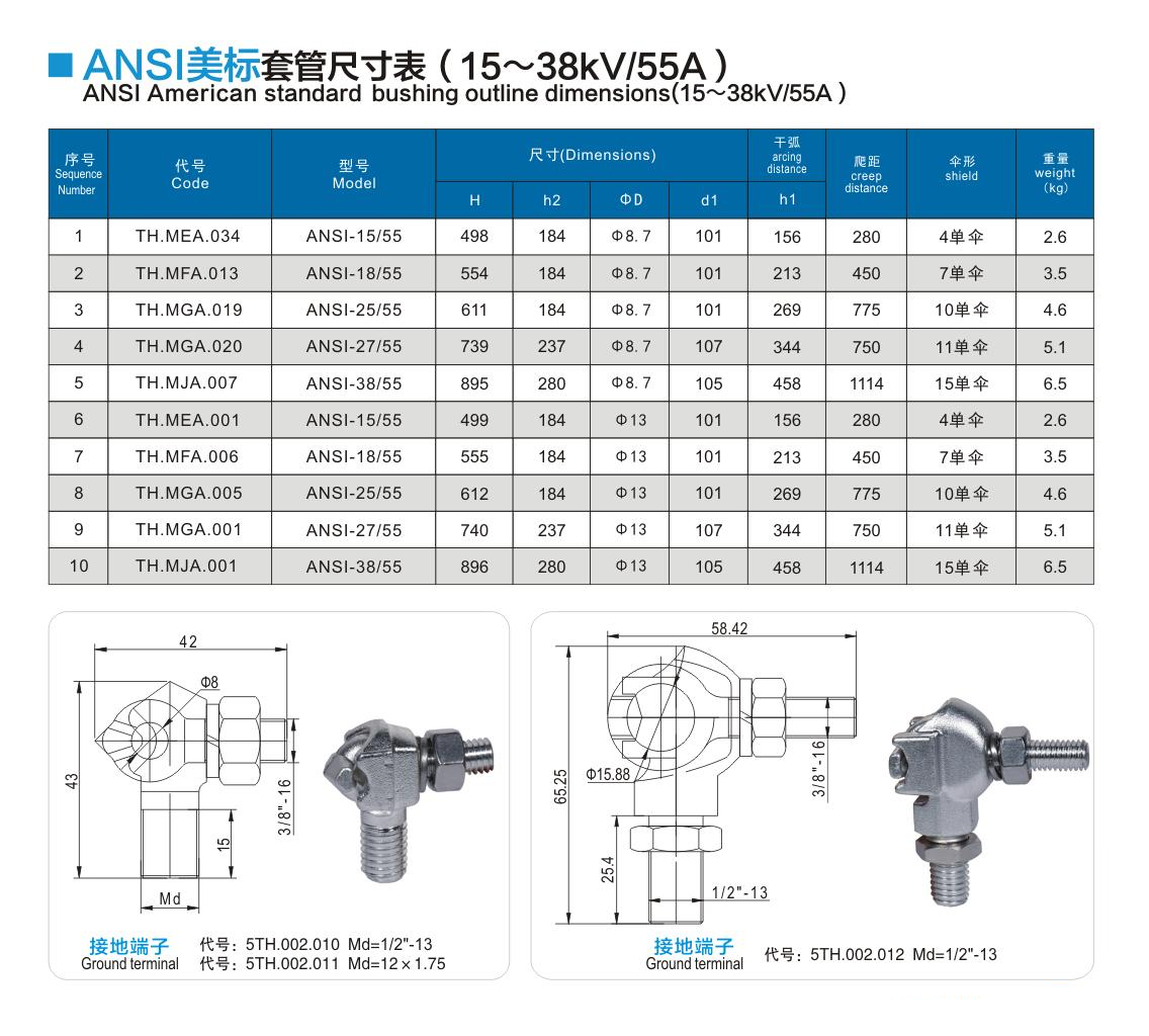 ANSI美標套管15~38kV/55A