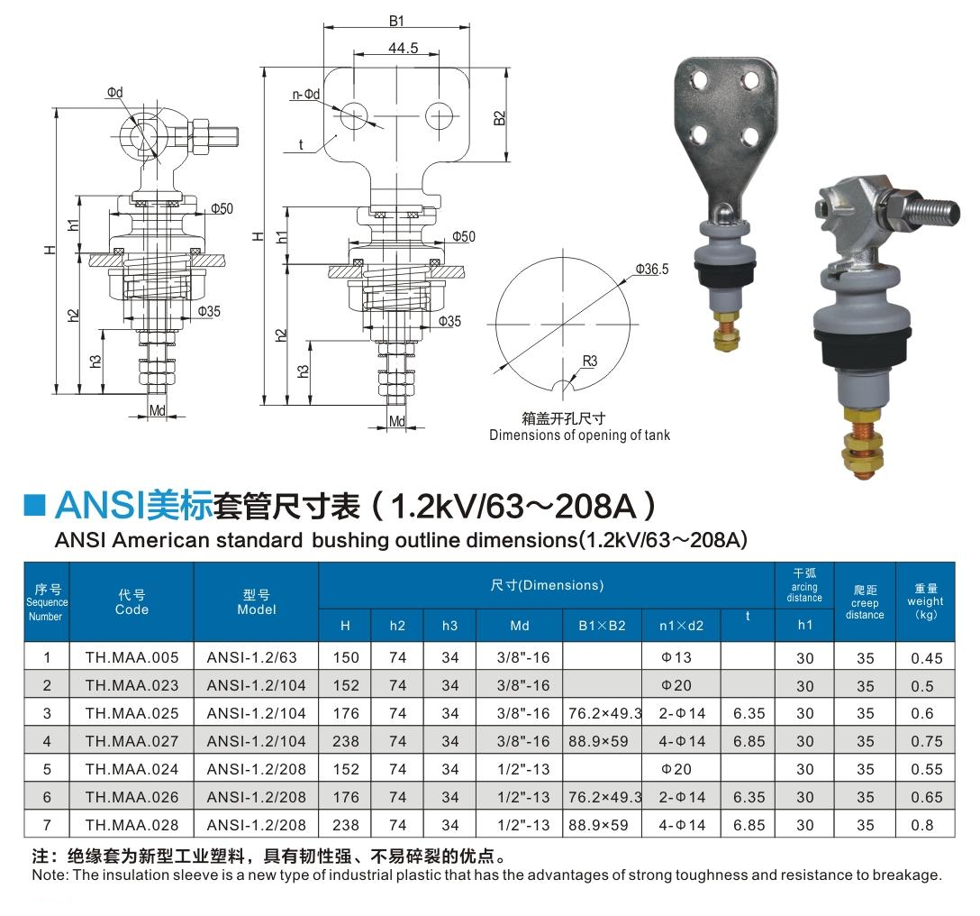 ANSI美標套管1.2kV/63~208A