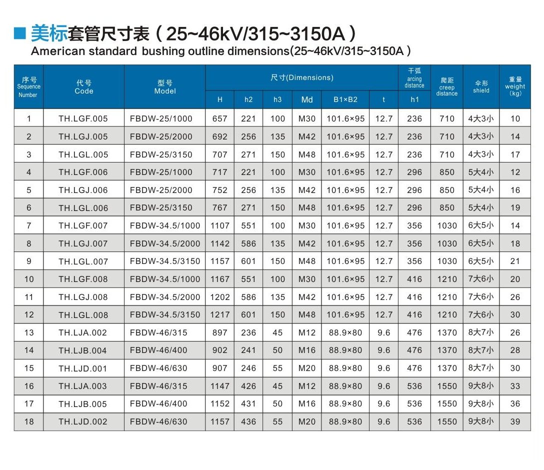美標套管25~46kV/315~3150A