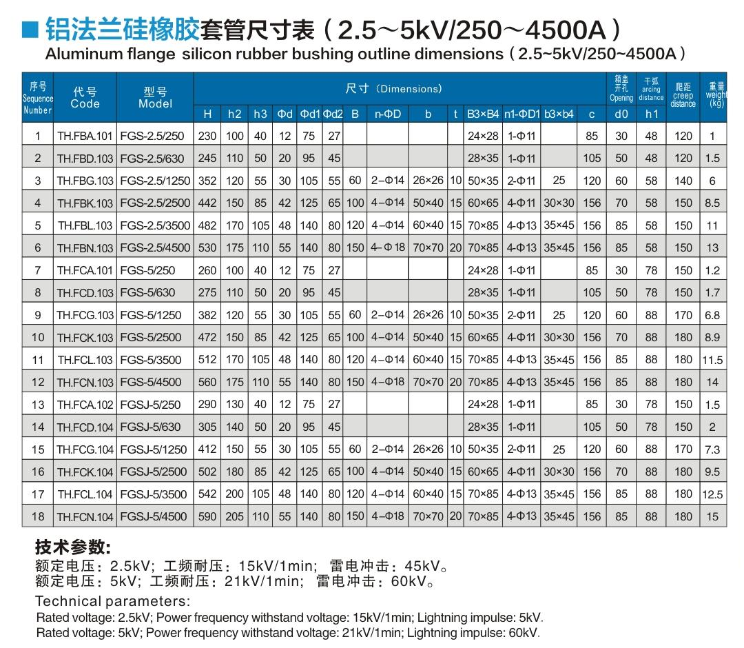 鋁法蘭硅橡膠套管2.5~5kV/250~4500A